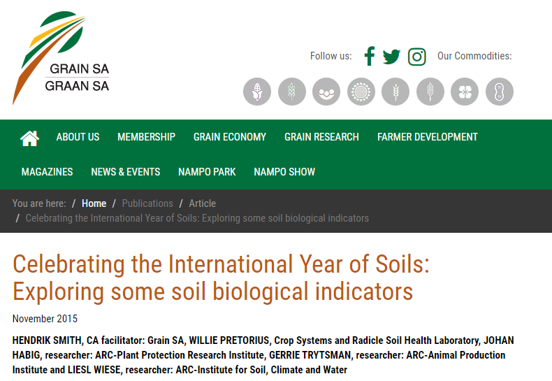 In this article, a few soil biological indicators are discussed, which are part of a growing pool of analytical options gaining ground in measuring short term changes in soil biology or health inflicted by changes in land management. They are discussed in relation to actual field measurements done for different cropping practices evaluated in the Ottosdal CA project, which is funded by the Maize Trust (MT), implemented by the Ottosdal No-till Club and co-ordinated by Grain SA’s CA Programme. These cropping treatments (bare soil, monocrop, rotations, mixtures and natural grassland or veld) include cash crops (maize, soybean and sunflower), as well as cover crops (e.g. Dolichos lablab, grain sorghum, babala, black oats and mixtures).